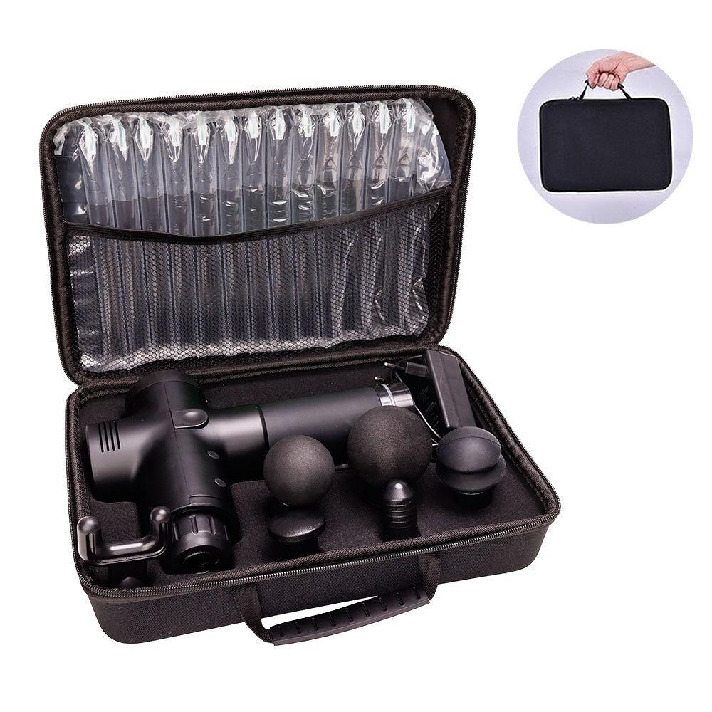 Massasjepistolen arbeider på flere ulike frekvenser avhengig av ønsket resultat. Det følger med seks ulike massasjehoder som enkelt skiftes avhengig av hvilke muskelgrupper du ønsker å massere: